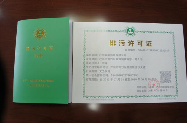 市环保局向广州华润热电有限公司颁发国家版排污许可证